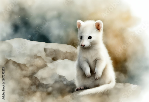 © sandra, Fototapeta premium isolated illustration ermine white background animal watercolor