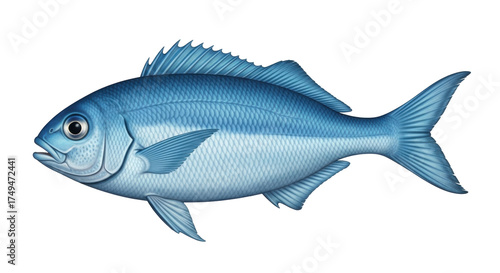 Fototapeta premium Isolated illustration of a blue fish with scales and detailed fins, aquatic...