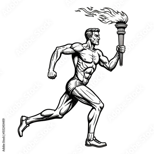© Rosa, Fototapeta premium Isolated Illustration of Muscular Runner with Torch on Transparent Background