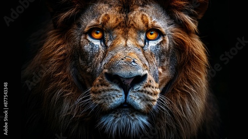 © Igbal, Naklejka premium Isolated image of a lion on a black background