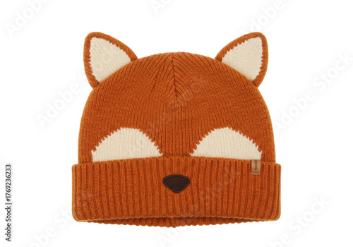 © Natasha, Obraz premium Isolated knitted fox hat, stylish headwear for fall and winter warmth, kids clothing item