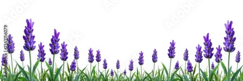 © Hugnaka, Obraz premium Isolated lavender flowers against white background, floral, lavender, greenery