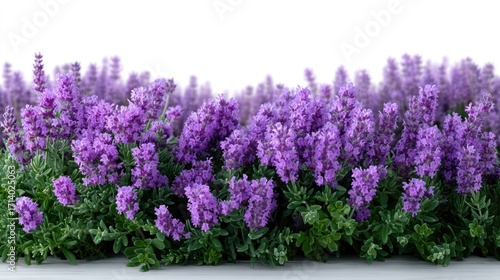 Naklejka premium Isolated Lavender Flowers on White Background with Green Leaves and Purple Blossoms in Bright Studio Lighting
