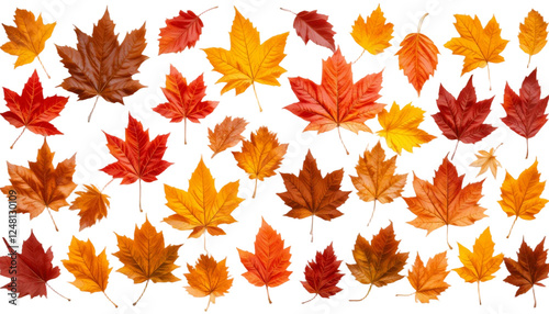 © Saputra, Fototapeta premium Isolated leaves. Collection of multicolored fallen autumn leaves isolated on white background