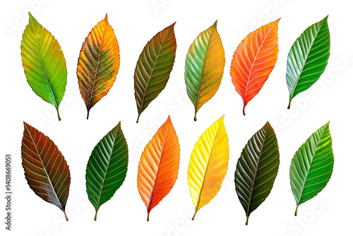 Obraz premium Isolated Leaves on Transparent Background Colorful Autumnal Pattern