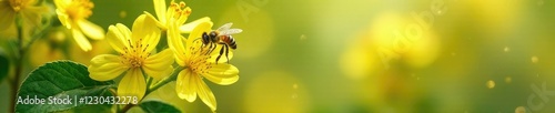 Fototapeta premium Isolated linden flowers with delicate golden pollen and surrounding bees,...
