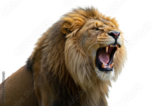 © Bogdan, Fototapeta premium Isolated lion roaring with an open mouth, looking angry, powerful king animal