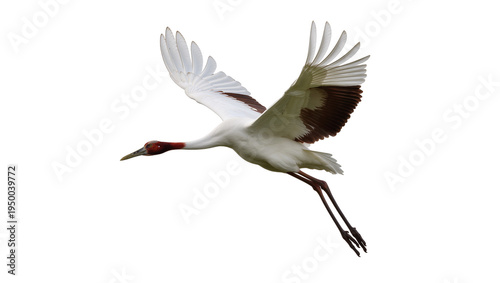 Obraz premium Isolated majestic crane with distinctive red head and powerful spread wings...