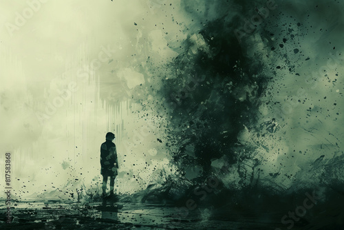 © TICAI, Obraz premium Isolated man in abstract background
