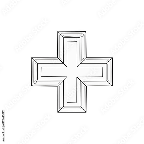 © Anastasiia, Obraz premium Isolated Medical Cross Symbol in Boxed Shape Outline Style