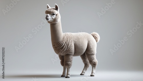 © AugmentArt, Fototapeta premium Isolated medium silver grey alpaca on white backdrop