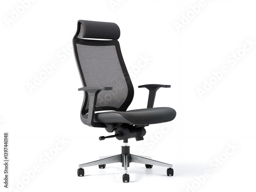 Fototapeta premium Isolated modern office chair, ergonomic design, mesh backrest