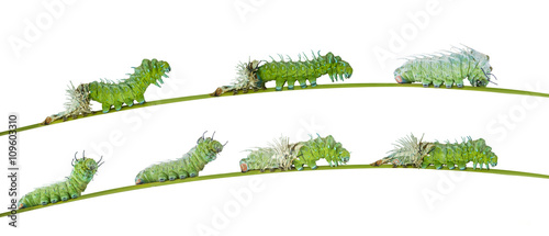 Obraz premium Isolated molting caterpillar of Atlas butterfly