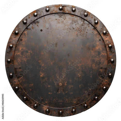 © agrus_aiart, Fototapeta premium isolated old round rusty metal shield - metal banner, design element