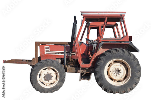 Fototapeta premium isolated old tractor, old agriculture machine on white background