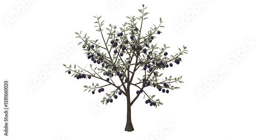 © SRRiadi, Naklejka premium Isolated Olive Tree with Ripe Olives and Green Leaves on White