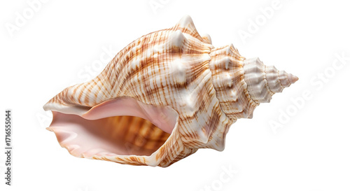 © Shika, Obraz premium Isolated on transparent background, a beautiful seashell with brown stripes stands out