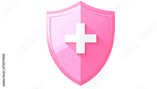 © salsabil, Obraz premium Isolated on Transparent Background Minimal Soft Pink Shield Outline with Cross Symbol, Modern Flat Icon