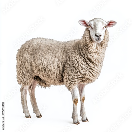 © Антон Сальников, Fototapeta premium Isolated on white background, a portrait of a sheep in full body size