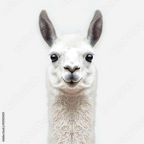 © Антон Сальников, Obraz premium Isolated on white background, llama face cutout shot