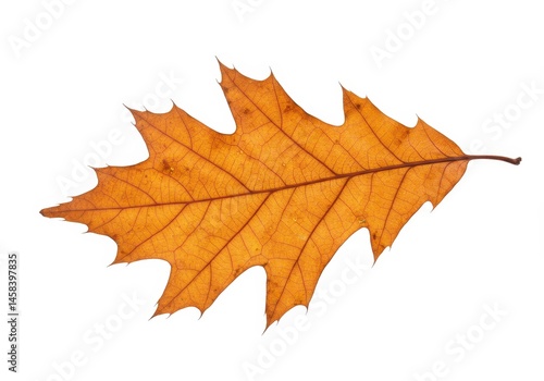 Obraz premium Isolated orange oak leaf with pointed lobes and visible veins on a white...