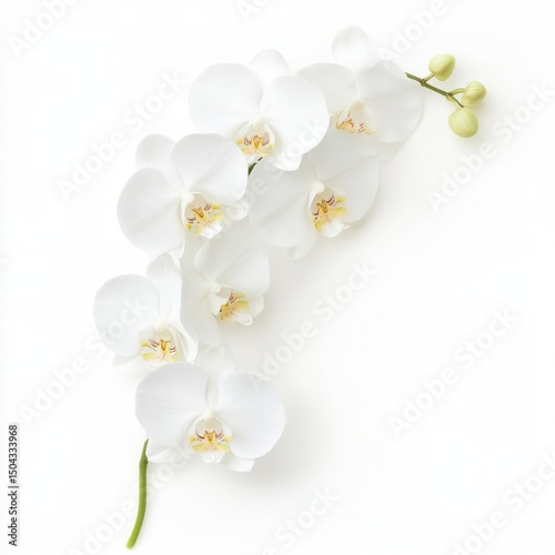 © julimur, Obraz premium Isolated orchid bloom with detailed petal textures and graceful curves, set against a clean white backdrop for product or design use.