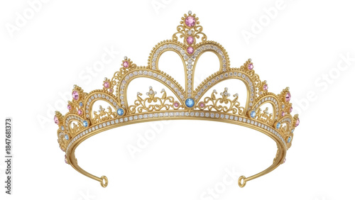 Fototapeta premium Isolated ornate gold tiara with diamonds, perfect for princess royalty or...