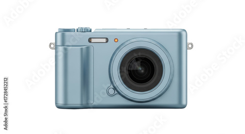 Fototapeta premium Isolated pale blue camera, lens and shutter button are visible, ready for...