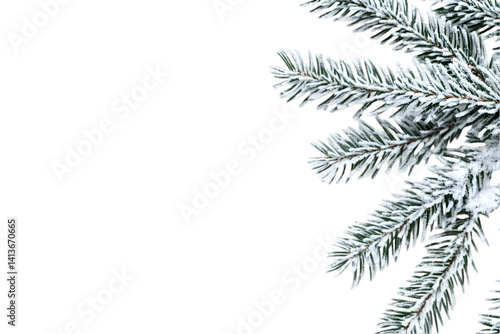 © Siasart Studio, Naklejka premium Isolated Photo of Wintery Pine Branches on Black Background