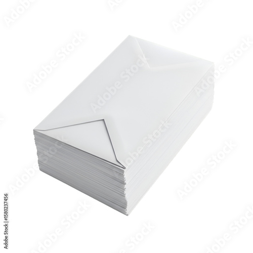 © Nicole, Fototapeta premium Isolated Pile of White Paper Envelopes Stack on Transparent Background