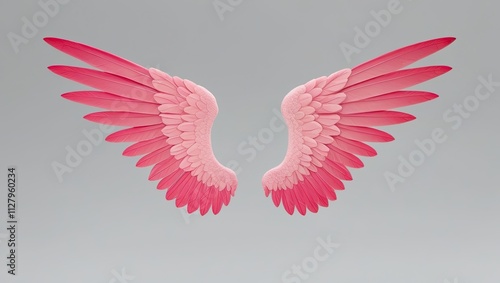 © Abbas, Obraz premium Isolated pink angle wings on a clear or white background