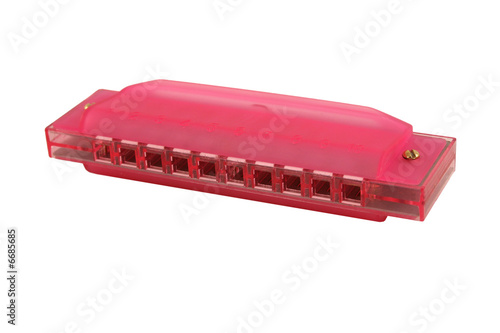 © Jim Mills, Fototapeta premium Isolated pink harmonica on white