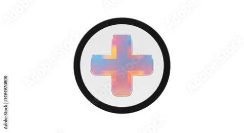 © Daniel, Obraz premium Isolated Plus Sign in Circle Iridescent