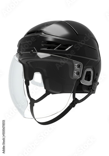 © LaiHan, Naklejka premium Isolated PNG of Black Hockey Helmet with Transparent Visor