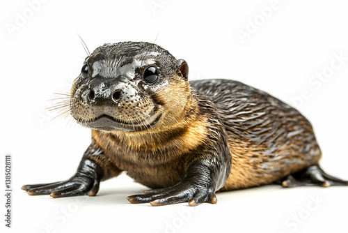 © MINK, Fototapeta premium Isolated portrait of a playful platypus with a duck-like bill showing detail of its smooth fur and interesting feet