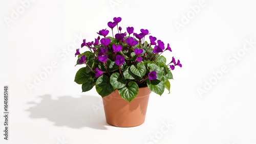 © vxnaghiyev, Fototapeta premium Isolated purple cyclamen in a container on a plain white surface
