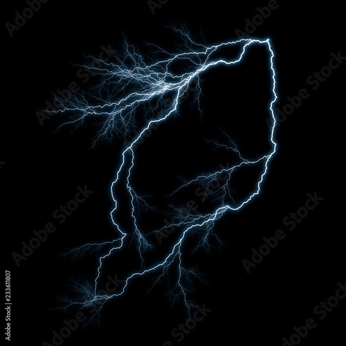 © artistmef, Obraz premium Isolated realistic electrical lightning strike visual effect on black night background. Energy change.