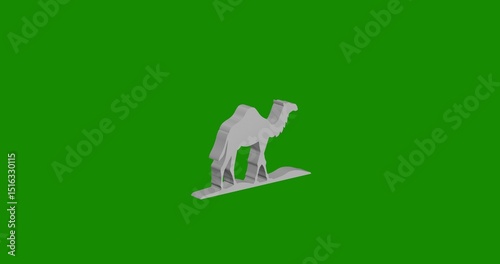 © Alexey, Obraz premium Isolated realistic white wild camel symbol front view with shadow. 3d illustration on green chroma key background