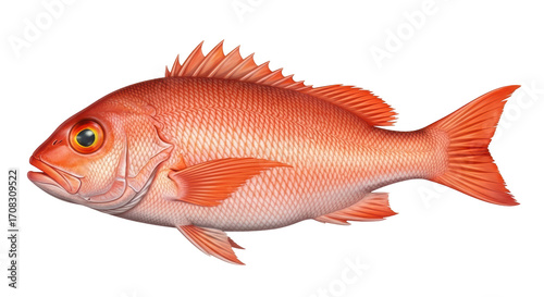 © Isolde, Fototapeta premium Isolated Red Snapper in Full Profile View, Marine Fish with Fins, Scales, and Yellow Eye