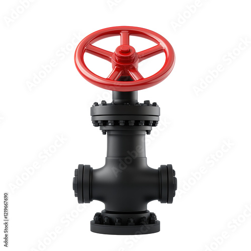 © Paula, Obraz premium Isolated Red Valve on Black Pipe