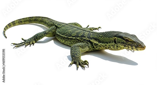 © Slamat, Fototapeta premium Isolated Reptile Monitor Lizard Moving on White Backdrop