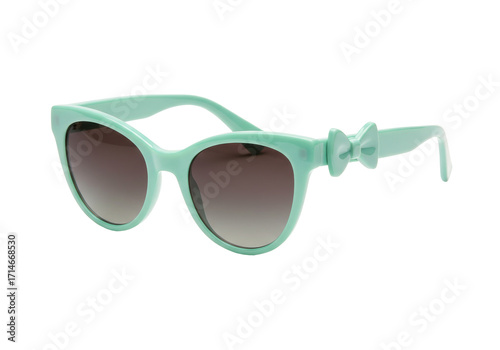 Fototapeta premium Isolated retro cat-eye sunglasses in mint green with bow decoration on temple, fashion item