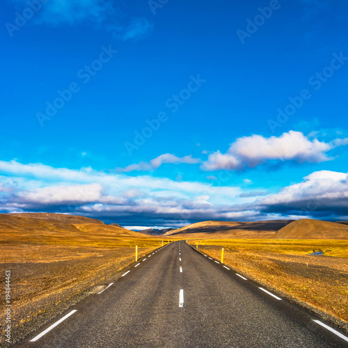 Fototapeta premium Isolated road and Icelandic colorful landscape at Iceland,
