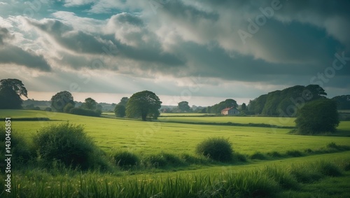 © AugmentArt, Obraz premium Isolated rural landscape in North Norfolk under a cloudy sky