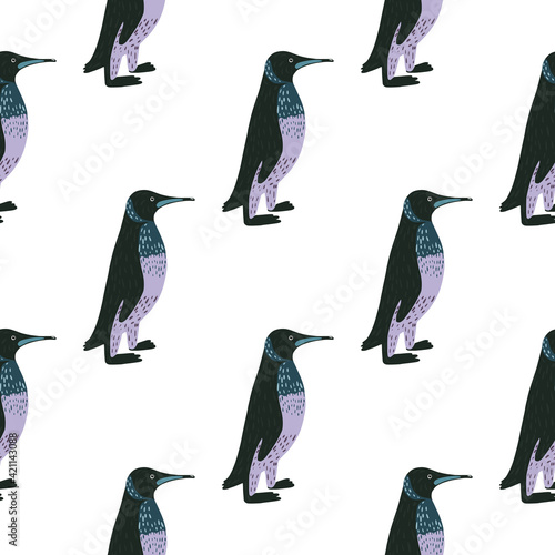 Naklejka premium Isolated seamless pattern with doodle funny penguin ornament. WHite background. Exotic zoo backdrop.