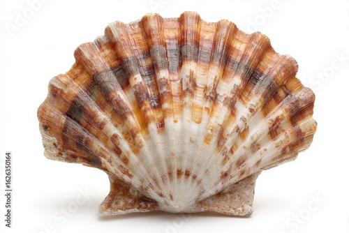 © Muhammad, Fototapeta premium Isolated Seashell Close-up with Brown Stripes on White Background