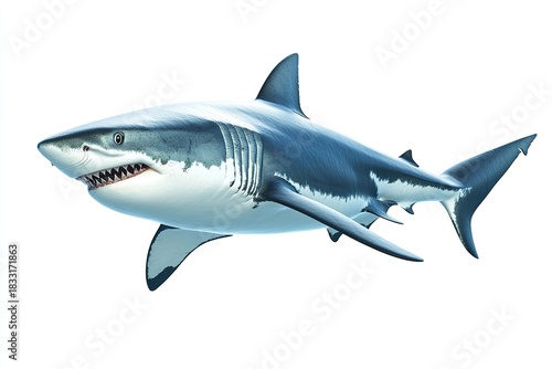 © Ritam, Naklejka premium Isolated Shark Swimming on White Background