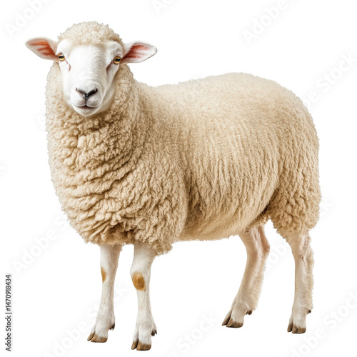 © Khaisan, Fototapeta premium Isolated sheep portrait on transparent background, domestic animal standing peacefully