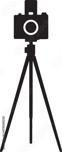 © Sakib, Obraz premium Isolated silhouette of a vintage camera on a tripod, minimalist design