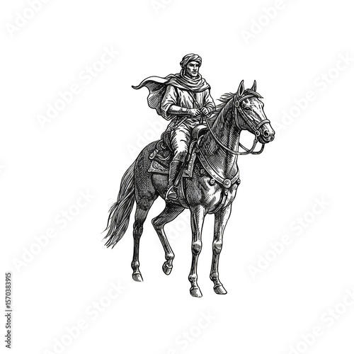 Fototapeta premium Isolated Silhouette of Equestrian Man Rider on Horse Galloping